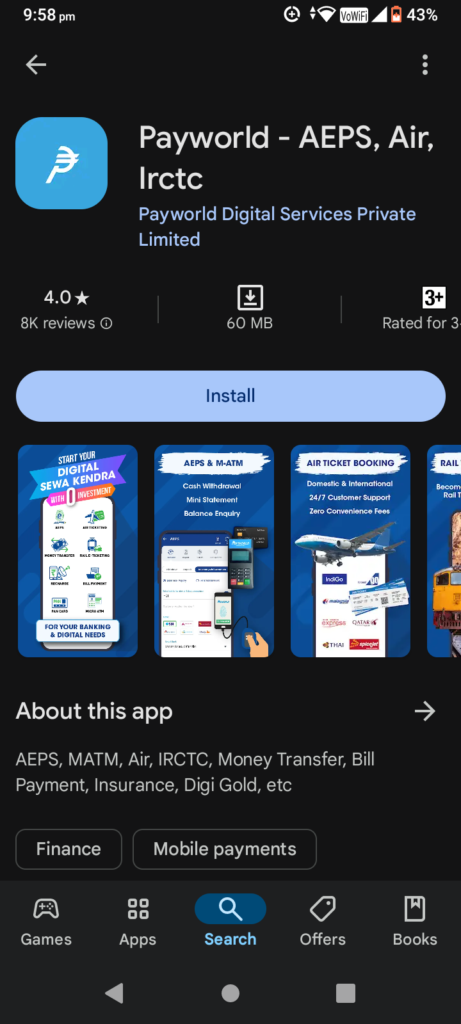 | ऐप का नाम (App Name) | Payworld App |